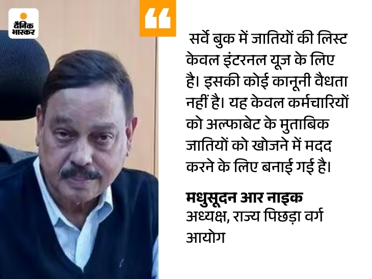420 करोड़ रुपए की अनुमानित लागत वाला यह सर्वे वैज्ञानिक तरीके से किया जाएगा। इसके लिए 60 सवाल रखे गए हैं। डुअल आइडेंटिटी यानी हिंदू और ईसाई दोनों नामों वाली जातियों को एप में नहीं दिखाया जाएगा।
